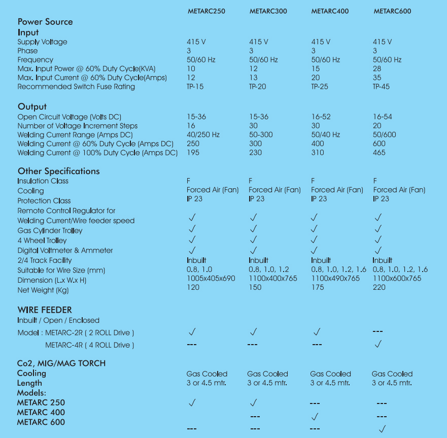 » Excellent quality welds with Solid/Fqucored/SS/Aluminium Wire.