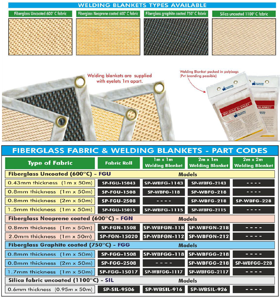 Welspring welding blanket are made from high temperature fiberglass woven fabric, in varying thickness. The fabrics can be uncoated or coated for varying applications. We offer uncoated fiberglass & Silica welding blankets as well as Neoprene coated, Graphite coated blankets. Other coatings are available on request.