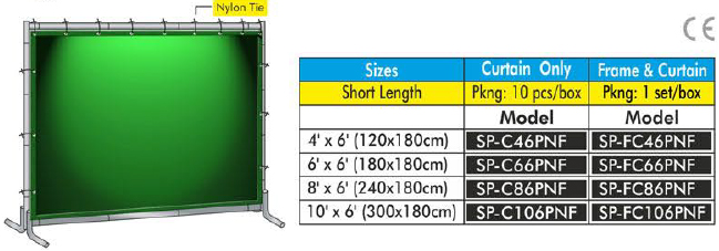 » Welspring made welding curtains are made from 1.4 mil (0.35mm) PVC film, and treated with special additives for UV stability and Flame resistance.